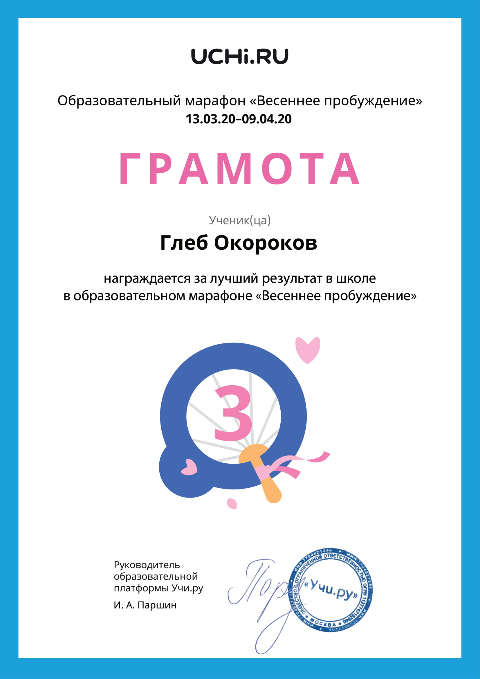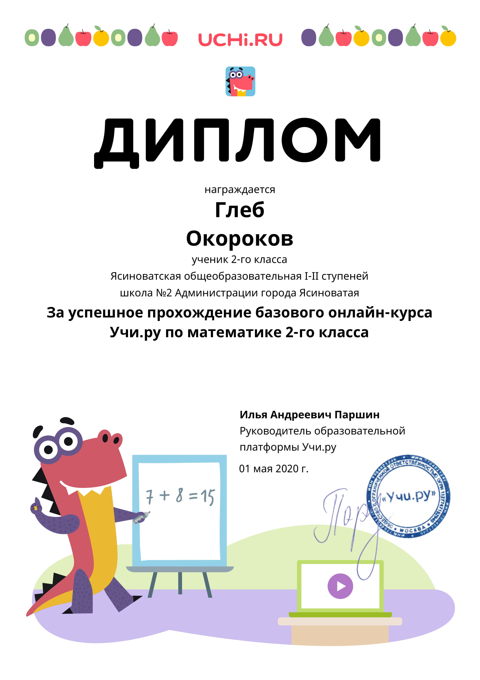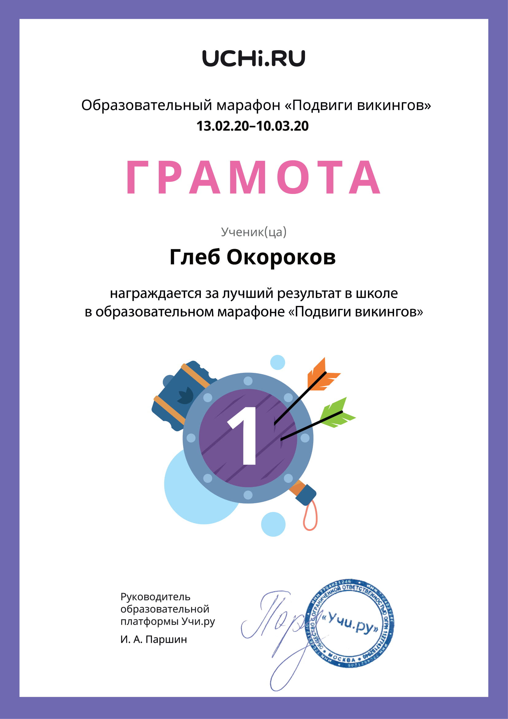 ПОЗДРАВЛЯЕМ НЕСХОДОВСКУЮ СОФИЮ, 1-А КЛАСС, С ЗАНЯТЫМ 1 МЕСТОМ В МЕЖДУНАРОДНОМ ЛИТЕРАТУРНОМ КОНКУРСЕ ДЛЯ УЧАЩИХСЯ 1-4 КЛАССОВ «РАССКАЗЫ Н. Н. НОСОВА» (КЛАССНЫЙ РУКОВОДИТЕЛЬ КУЛИНИЧ ВАЛЕНТИНА ВИКТОРОВНА)