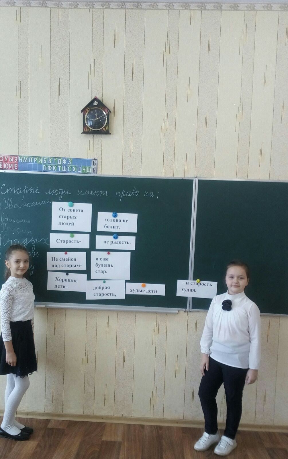 1 октября в России считается Днём пожилых людей, когда мы должны отдавать дань уважения тем, кто строил дома, в которых мы живём, делал дороги, по которым мы ходим, а главное, сохранял для нас Родину. В 3- Б классе ко Дню пожилых людей прошел классный час «День добра и уважения». Ребята узнали много интересного о жизни и необычных увлечениях пожилых людей, делились своими наблюдениями и знаниями. И незаметно для себя учились, как можно и нельзя поступать.