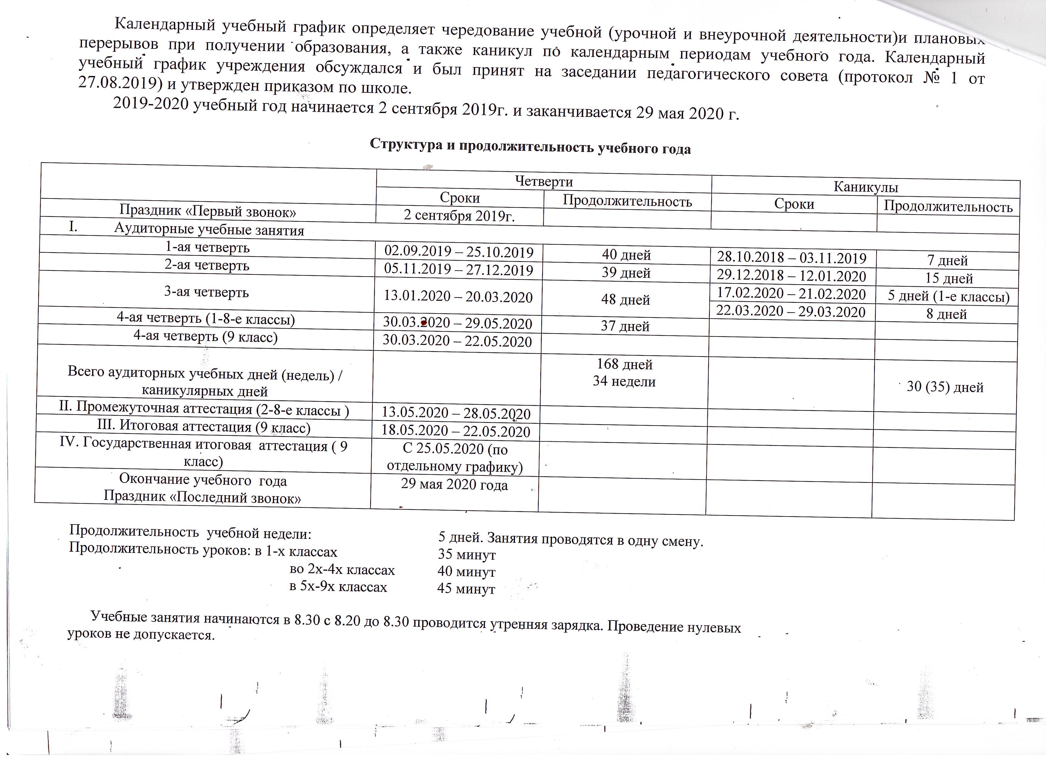 КАЛЕНДАРНЫЙ УЧЕБНЫЙ ГРАФИК